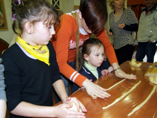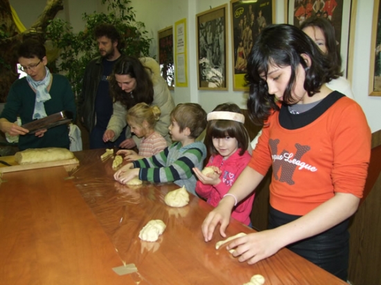 A játszóház mellett a gyerekeket és nem utolsó sorban a felnőtteket is szórakoztatta a Bab Társulat interaktív mesejátéka, Matyi, a ludas címmel. Délben aztán megérkezett az az édes tészta, amiből bárki megformázhatta a saját kalácsát. A kicsik főleg süniket, csigákat mintáztak maguknak, amit aztán a kinti kemencékben ki is sütöttek. Végezetül az Újhold Régizene Együttestől a középkori táncok alapjait is elsajátíthatták az érdeklődők.