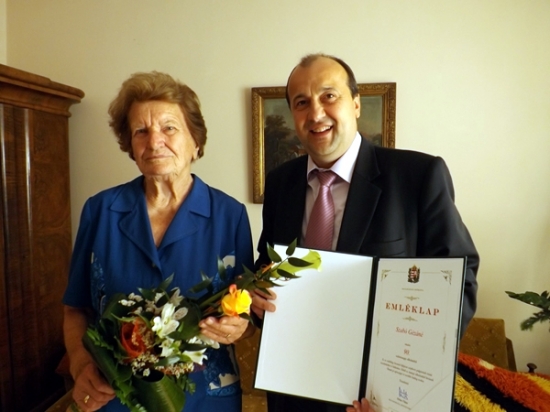 Szabó Gézáné, Kati nénit köszöntötte a városvezetés 90. születésnapja alkalmából. A szépkorú hölgy, korát meghazudtolóan fiatalos, szellemileg és fizikailag egyaránt friss.