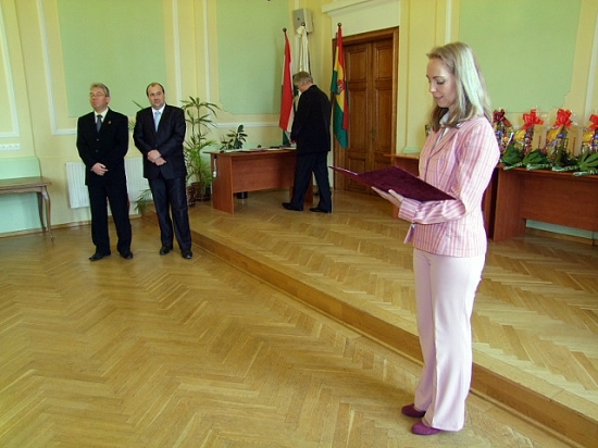 Az eseményen elsőként dr. Molnár Attila polgármester előtt tették le az esküt a pályakezdő óvónők, tanítók, tanárok és gyógypedagógusok, akik a 2014/15-ös tanévben kezdték meg a munkát városunk valamelyik tanintézményében. Névszerint Albert Józsefné, Balogh Tomas, Czitáné Bibók Melinda, Csatári Dóra, Lőrincz Gábor, Németh Józsefné, Szakács Roland és Tóthné Szabó Erika.
