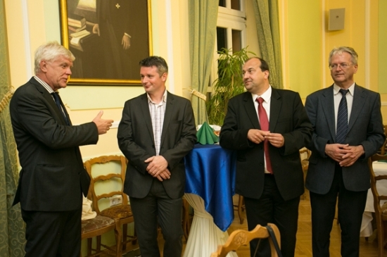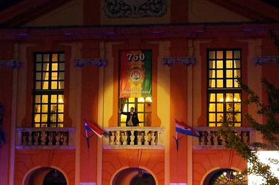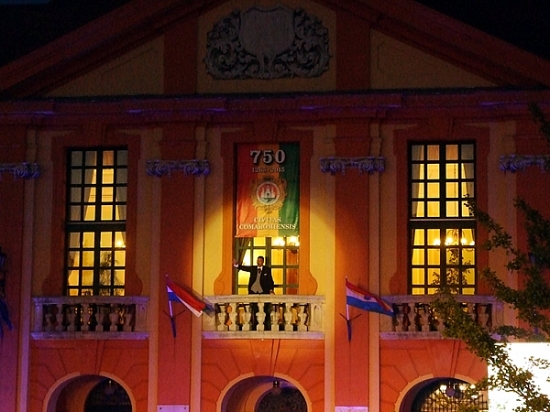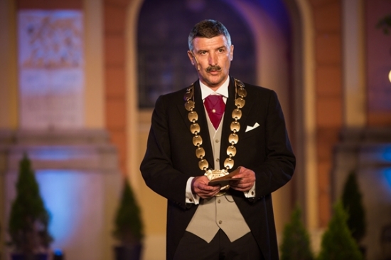 A függöny felgördülése előtt Észak- és Dél-Komárom polgármester is szólt a nézőkhöz. Dr. Molnár Attila Dél-Komárom vezetője elmondta, hogy az, amiről nem tudunk, nem része a nemzeti tudatnak, nem épít bennünket. Sajnos Alapy Gáspárról is keveset tudunk, noha ő volt az a polgármester, aki 7 utcás kis településből egy 53 utcás virágzó kisvárost hozott létre, miközben a lakosság száma megháromszorozódott. Stubendek László Észak-Komárom polgármestere mindehhez hozzátette, hogy a felvidéki magyarságnak is van egy olyan politikusa, név szerint gróf Esterházy János, aki egyedüliként emelte fel szavát a szlovák parlamentben a zsidóüldözések ellen. Évtizedekig Eszterházyról sem volt szabad beszélni. Az észak-komáromi polgármester külön örömét fejezte ki azért, hogy azt a széket, amiben egykor Alapy Gáspár ült a bemutató erejéig kölcsönadhatta, így teremtve meg egy szellemi és lelki kapcsolódást múlt és jelen között.