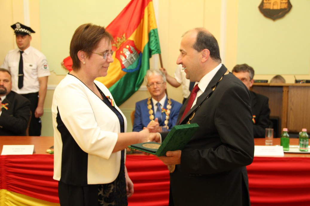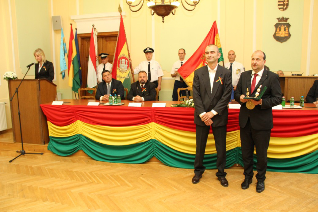 Észak- és Dél-Komárom képviselő testületei április 26-án, a komáromi csata emléknapján idén is megtartották együttes ünnepi testületi ülésüket, ezúttal a Duna déli partján, a Városháza dísztermében. A hivatalos ceremónián került sor a díszpolgári kitüntető cím, a Pro Urbe-, valamint a polgármesteri díjak átadására.