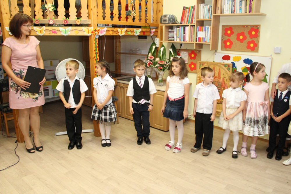 A délelőtt a gyerekek csoportjainkban játékos feladatokkal szórakoztatták az óvónőket és dajkákat, akiktől cserébe ajándék kitűzőt kaptak, valamint egy színes születésnapi tortát is.