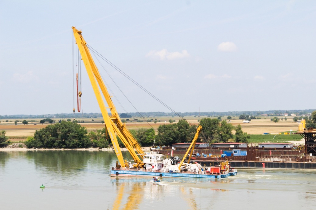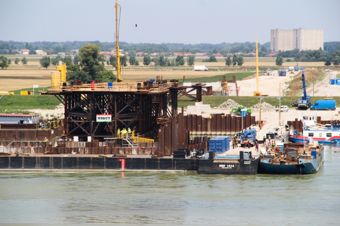 A teljes híd 37 hasonló elemből áll, ezek összsúlya 5400 tonna. Az útpálya részeit az összeállítás után egy időre Szlovákia irányba tolják el, így párhuzamosan építhetik a hidat tartó pilont, amely 2400 tonnás és közel 95 méter magas lesz.