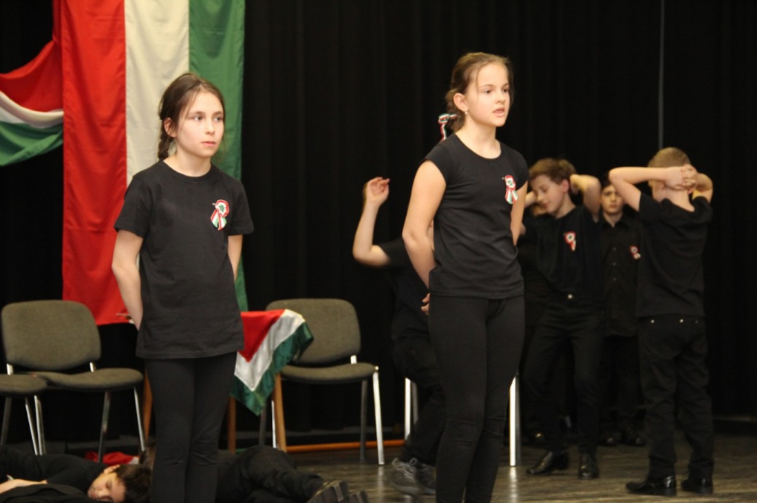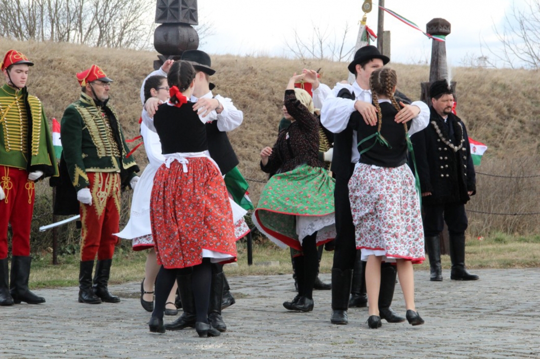 Az ünnepi beszéd elhangzása után a Jókai Mór Gimnázium dákjainak műsora következett, majd Tóth Tibor, az észak-komáromi Jókai Színház igazgatója szavalta el az Egy gondolat bánt engemet című Petőfi verset. A Garabonciás Táncegyüttes és a Horsa Banda fellépése után, Gál László megrendítő tolmácsolásában hallgathattuk meg Vörösmarty Mihály A vén cigány című költeményét, majd a rendezvény zárásaként a koszorúzás következett.