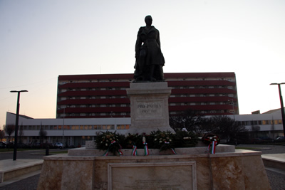 ALAPY GÁSPÁR (1880-1945) ősi Komárom megyei család sarjaként Észak-Komáromban született. Tanulmányai elvégzése után 1907-ben kezdett el dolgozni az észak-komáromi városházán. 1921-ben Dél-Komáromba jött, ahol bekapcsolódott a város vezetésébe 1922-től helyettes, majd 1928-től kinevezett polgármesterként. Városépítő tevékenysége során virágzó kisváros alakult ki. Népszerűségének köszönhetően és érdemeinek elismeréseként 1939. július 15-től az újra egyesített Komárom polgármestere. 1944 augusztus 31-én nyugdíjba ment. 1944. október 17-én letartóztatták a nyilasok, a Csillagerődbe, majd Dachauba hurcolták ahol mint a 136708 számú fogoly halt meg 1945. február 5-én. A legnehezebb időkben is ki merte jelenteni: "Én esküt tettem rá, hogy minden polgár ügyét egyformán szolgálom."